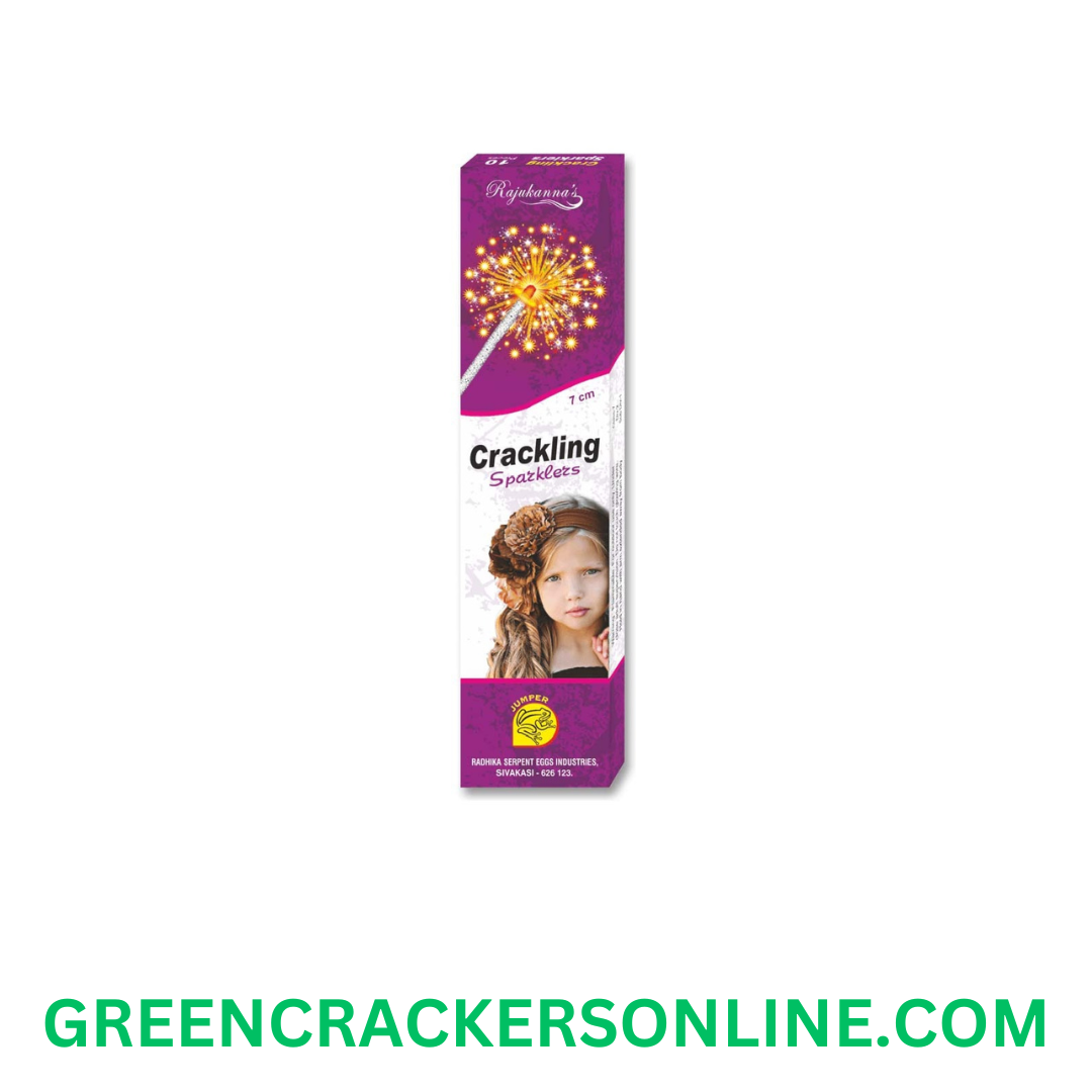 Introducing 7cm Crackling Sparklers B (10 Pcs) from GreenCrackers.com! These sparklers are perfect for Diwali celebrations and will add a special touch to your festivities. Our sparklers are made with the highest quality materials and are sure to provide you with a safe and enjoyable experience. Each pack contains 10 pieces of 7cm crackling sparklers that will last up to 30 seconds each. They are easy to light and provide a beautiful display of sparks that will light up the night sky. So, get ready to celebrate Diwali in style with these amazing sparklers from GreenCrackers.com!